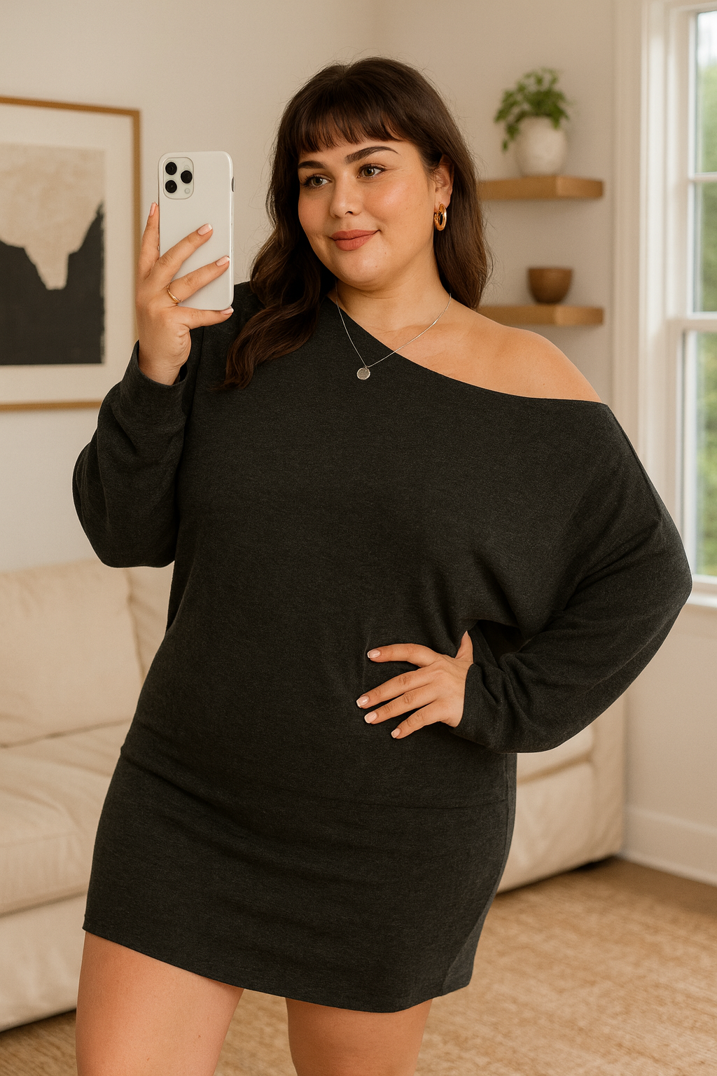 Elegantné a zároveň pohodlné – tieto čierne úpletové minišaty s voľnejším strihom a odhaleným ramenom sú ideálnou voľbou na bežné nosenie aj na večerné príležitosti. Príjemný elastický materiál krásne padne na postavu, zvýrazní ženské krivky a zároveň poskytuje komfort počas celého dňa. Jednoduchý dizajn ľahko skombinujete s opaskom, kabelkou či vysokými čižmami pre trendy look.